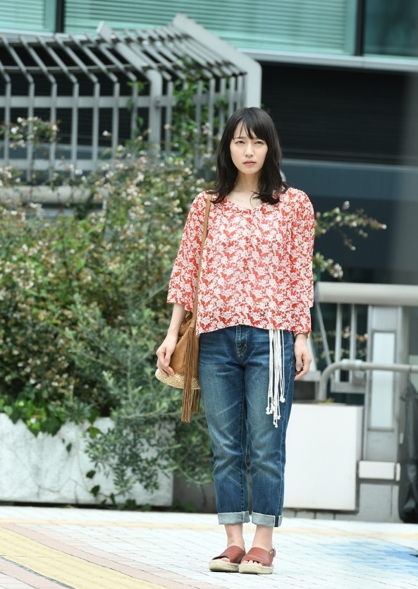 吉岡里帆(エーチーム所属) トレンドの小花柄トップスは オンオフで使い分け